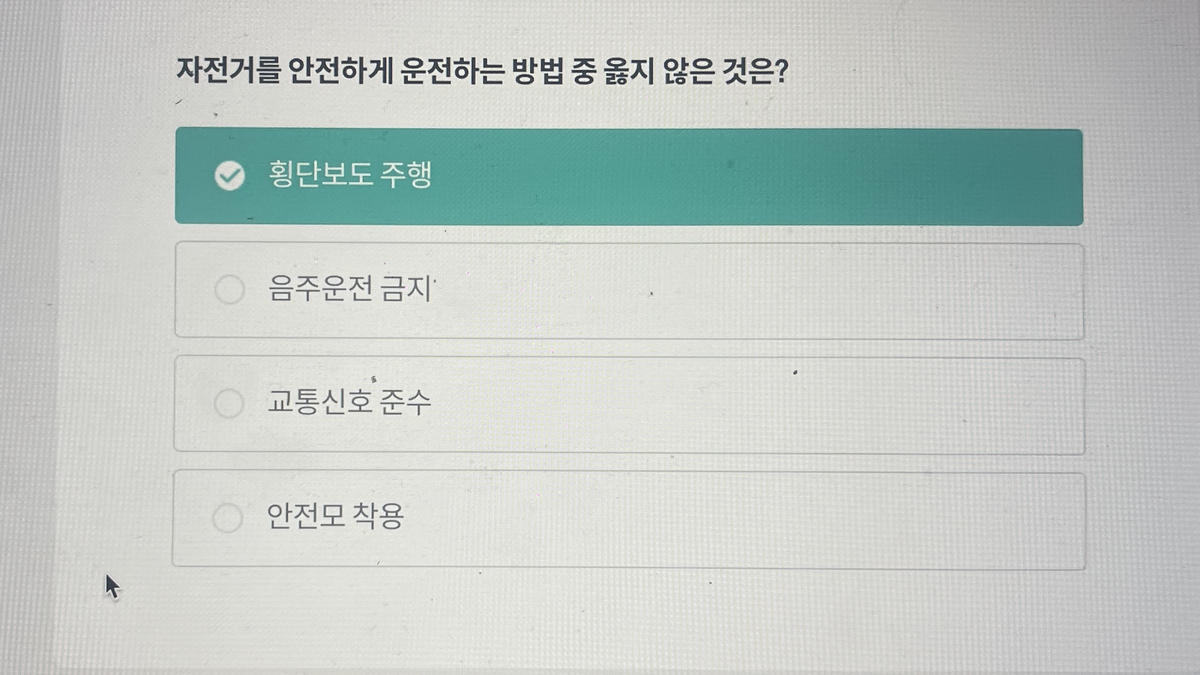• 내용: 1편은 자전거, 킥보드, 오토바이 점검법과 교통법규, 2편은 사고 사례와 중과실 교통사고 예방법 등 을 다뤄요. 동영상은 100% 시청해야 퀴즈로 넘어갈 수 있어요.